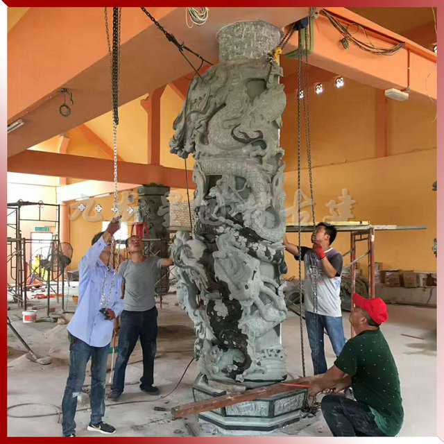 九龍星園林古建寺廟青石龍柱安裝現場