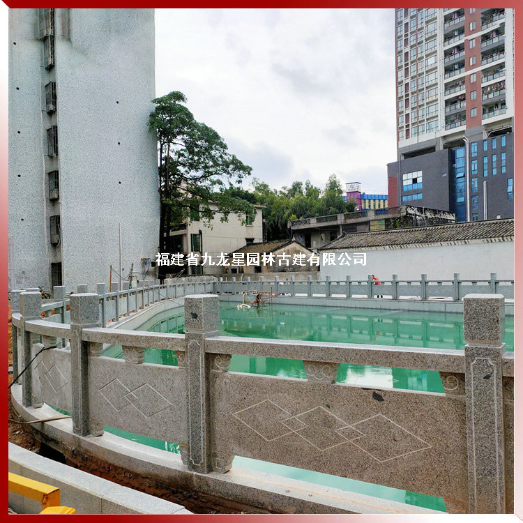 石雕欄桿,石雕裝飾魚池欄桿, 石雕護河欄桿訂制,找九龍星園林古建。專注生產加工各式石雕欄桿石材欄板欄桿,適用于橋梁河道、景區廣場、寺廟祠堂等室內外各類場所防護裝飾。