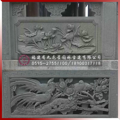 惠安石雕欄桿花草鳥獸圖案由九龍星園林古建有限公司雕刻生產加工。