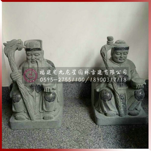 現貨青石小型土地公土地婆坐石雕像