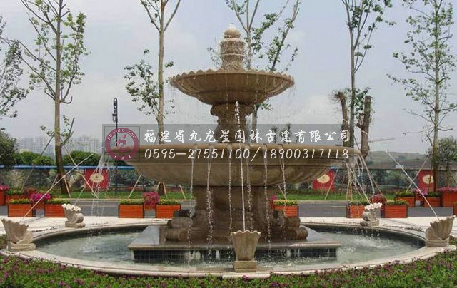 石雕噴泉水景具有美化環(huán)境、烘托活躍 氣氛的功能,能更好體現其美感和自然特性,起到點綴、襯托、渲染裝飾效果。 噴泉水景往往是人們視覺的焦點,是構成一定空間環(huán)境的景觀中心。