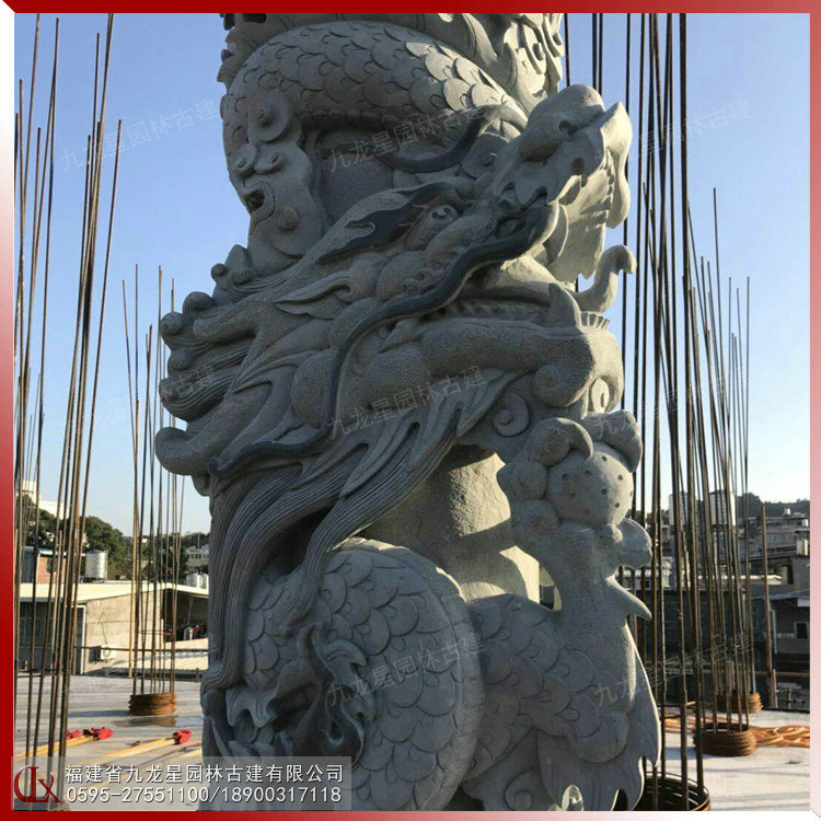 石雕盤龍柱雕刻廠家選擇九龍星園林古建