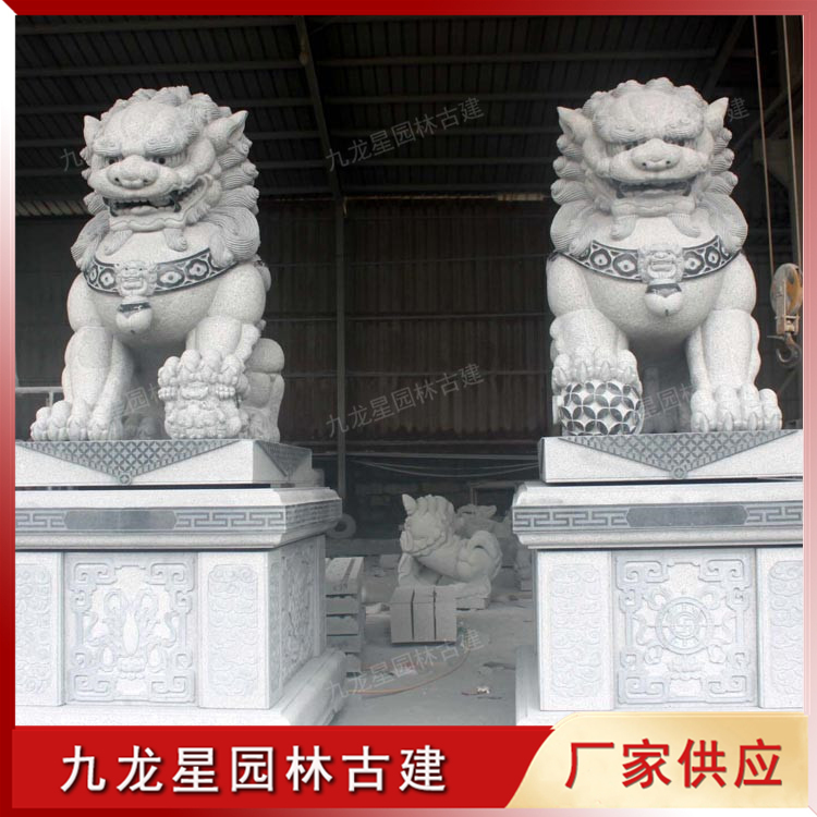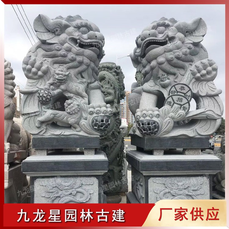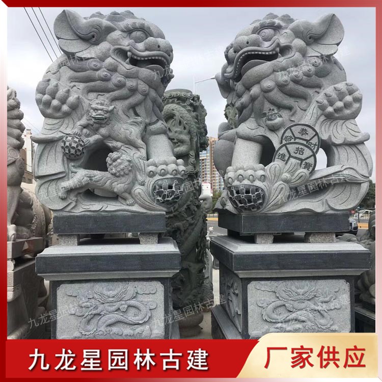 石雕南獅,南方石雕獅子廠家推薦選擇九龍星園林古建。供應石雕獅子造型有北京獅、獻錢獅、網球獅、港幣獅,石獅子用料有青石、大理石、花崗巖。提供石雕獅子各種材質、類型、類別、豐富的產品信息,幫助您選擇更好的石雕獅子產品?;莅彩裨搭^廠家,價位合理,支持來圖來樣定制加工。